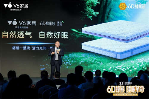 V6家居洞察年轻消费者的消费偏好和消费认知—材料科技才是舒适的根本,用科技造出好产品,让好产品自己说话。正因如此,江涛表示V6家居升级了全新slogan“用科技实现舒适生活”,6D蜂巢芯新品就是在这一理念下研发出的革新睡眠芯材技术的重磅产品。自上市以来火爆终端,从销售端验证了好产品品质,6D蜂巢芯床垫定义了好床垫的“757”行业标准,6D蜂巢芯沙发定义了好沙发的“6551”行业标准。